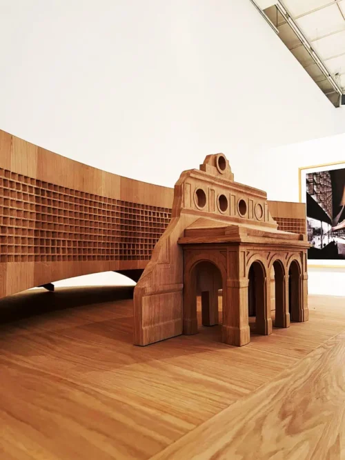 Model af Exile museet ved historiske Anhalter Banhoff i Berlin i massiv egetræ, hvor bygningen har en bredde der måler mere end en meter. Modeller er CNC fræset, facetteret, limet under spænd og håndskåret med stemmejern.